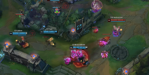 比赛一开始,双方就展现出了不同的战术思路。G2采用了下路换线的策略,而TES则迅速做出反应,抓住G2上野的破绽,成功抓死G2上野,掌控了野区资源。G2在前期的表现略显不佳,阵型割裂,在换资源和越塔操作上都不尽如人意。TES则针对G2单人路的赛恩,集中火力,打穿了这一路,取得了前期的优势。