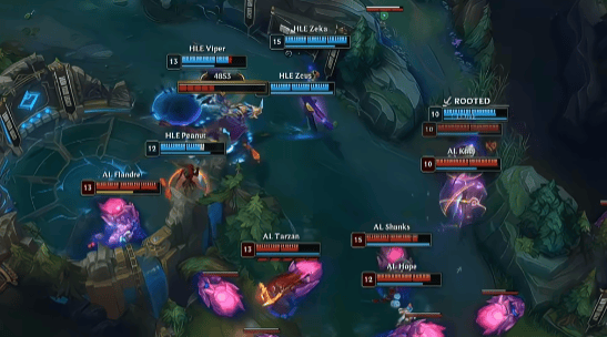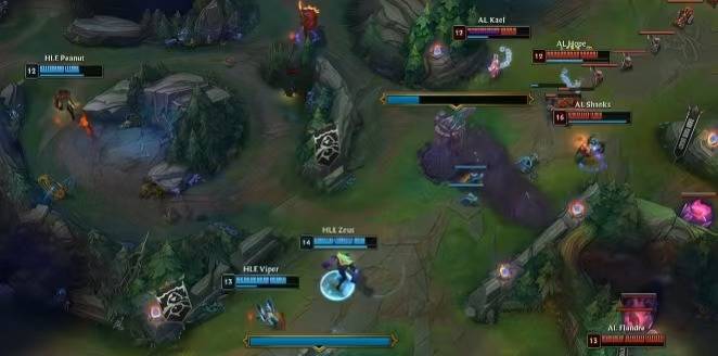 在2025年英雄联盟全球总决赛瑞士轮首轮,AL与HLE的对决堪称一场视觉盛宴。HLE选用了奎桑提、皇子、瑞兹、卡莎、牛头的阵容,而AL则派出雷克塞、潘恩、蛇女、芸阿娜、妮蔻应战。比赛刚开局两分钟,HLE野辅就到中路Gank,这一行动不可谓不迅速。